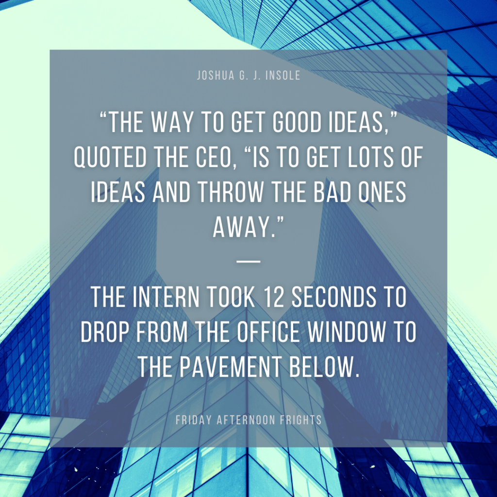 Every Friday afternoon, I’ll write a two-sentence comedy/horror story, based on a randomly generated word. This week’s word is brainstorm!