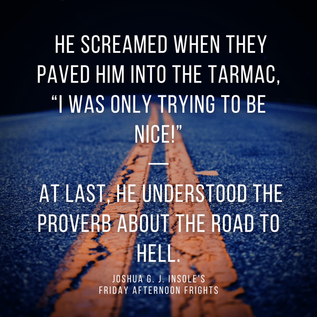 Every Friday afternoon, I’ll write a two-sentence comedy/horror story, based on a randomly generated word. This week’s word is intention!