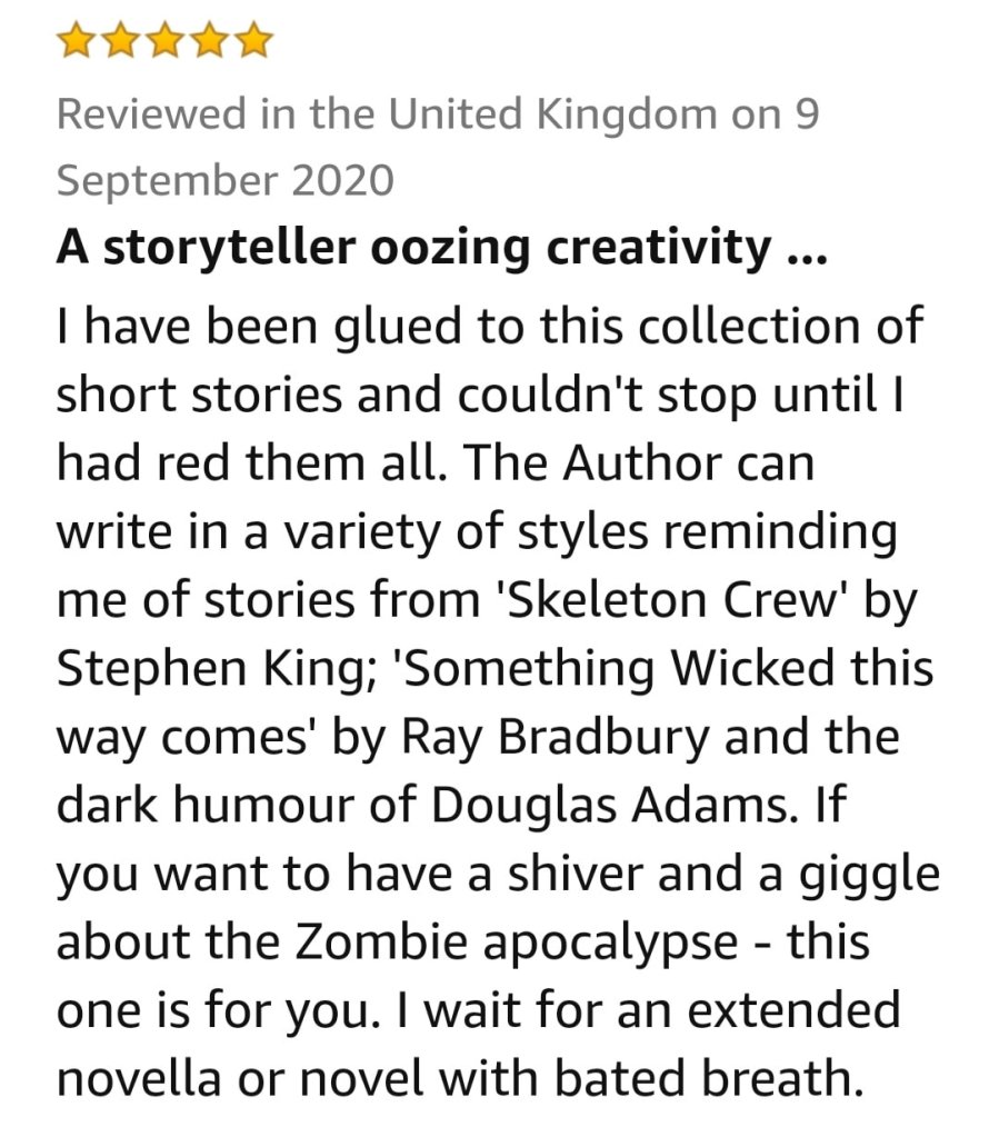 I always appreciate it when people take the time to read my work. It’s also lovely when they leave a review, as well! Reviews are like pockets of air for us indie authors, as we dive down into the abyss.