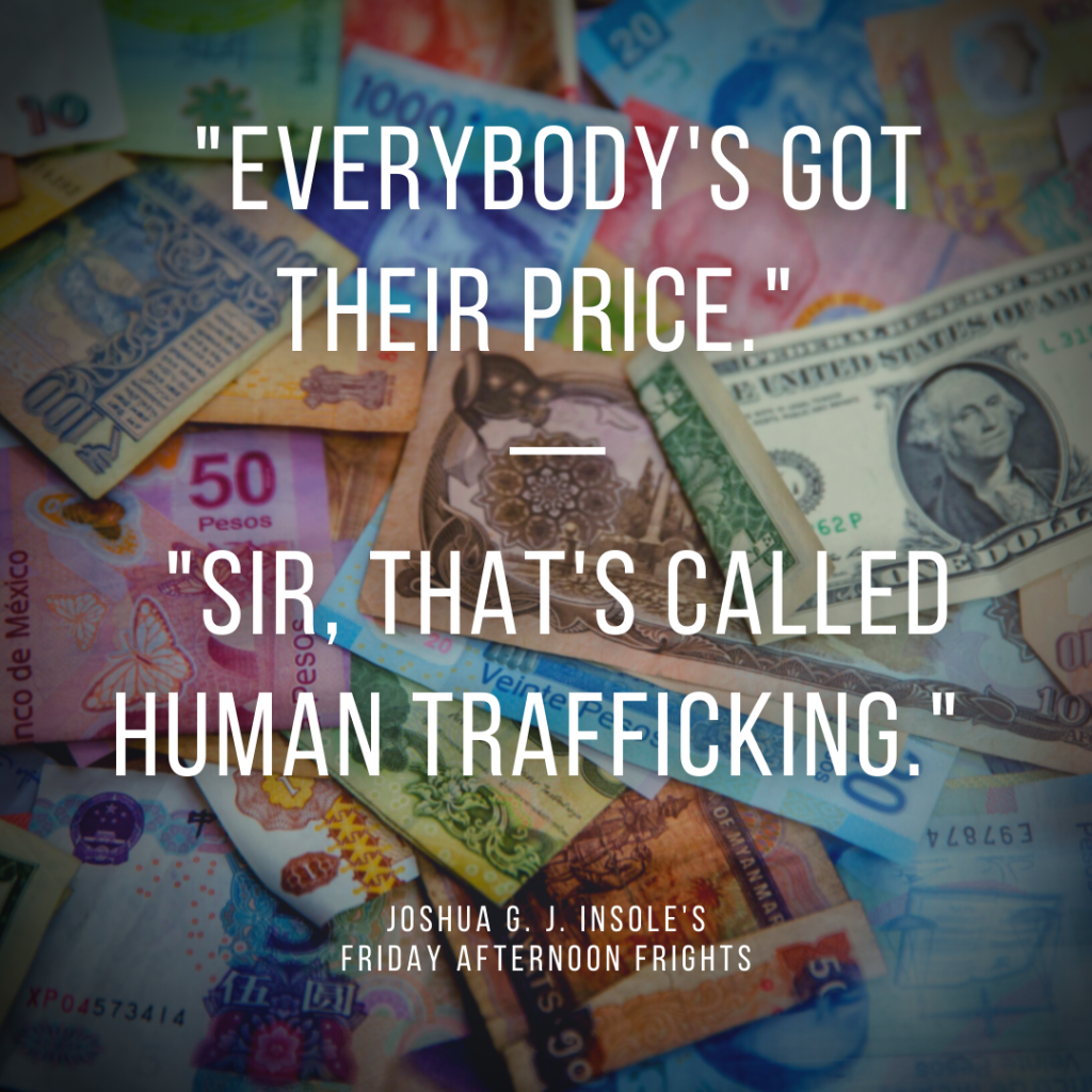 It’s here, it’s here! October arrives tomorrow. My absolute favourite time of year. The leaves have begun to yellow and curl. The air has grown colder. Halloween is on the horizon. Soon we’ll all be knife-deep in a pumpkin. The problem? It’s only one day and one night! So, join me in my month-long celebration of all things spooky with 31 Days of Halloween. This October, I’ll be posting a Bite-Sized Horror/Friday Afternoon Fright every. Single. Day! Two-sentence shockers for a month, without reprieve. Happy Halloween!