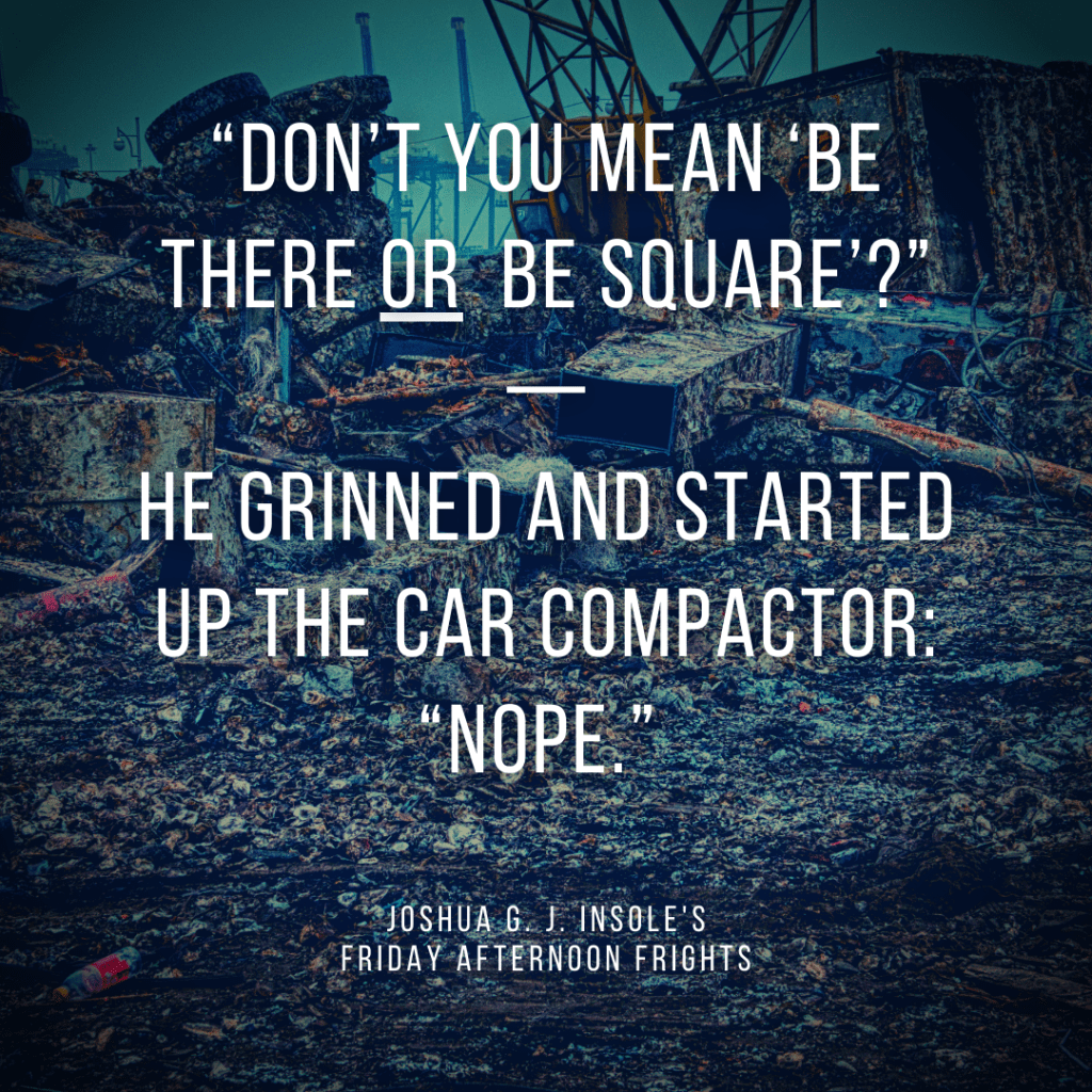 Every Friday afternoon, I’ll write a two-sentence comedy/horror story, based on a randomly generated word. This week’s word is square!