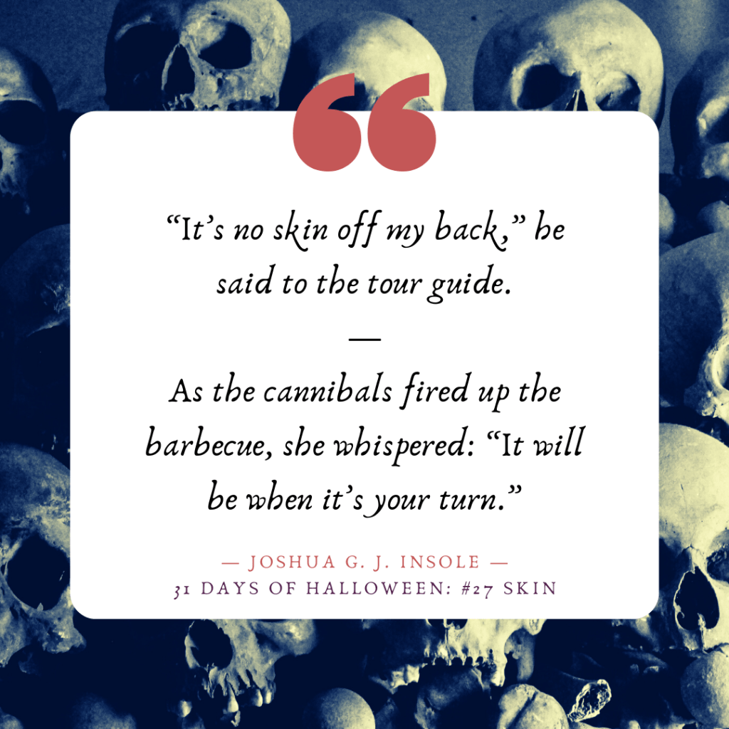 Just for Halloween, Bite-Sized Horror is now a daily event! Two-sentence shockers based on a random prompt, every afternoon! Today’s word is skin.